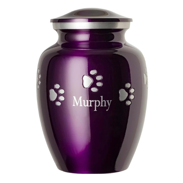 Pet Urn for Dogs and Cats with Personalized Laser Engraving, Ottillie Paws Premier Series Memorial Urns (Small Amethyst Purple with Horizontal Pewter Paws)