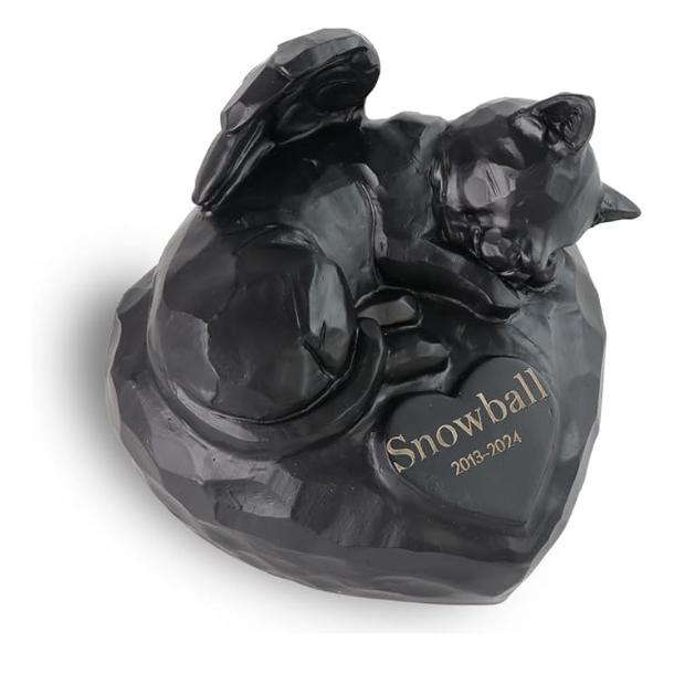 Generic Black Angel Cat Shape Urns for Ashes – Personalized Memorial Cat Ashes Urn with Engraving Your Pet’s Name,Date,Sympathy Urn for Loss of Pet Cat